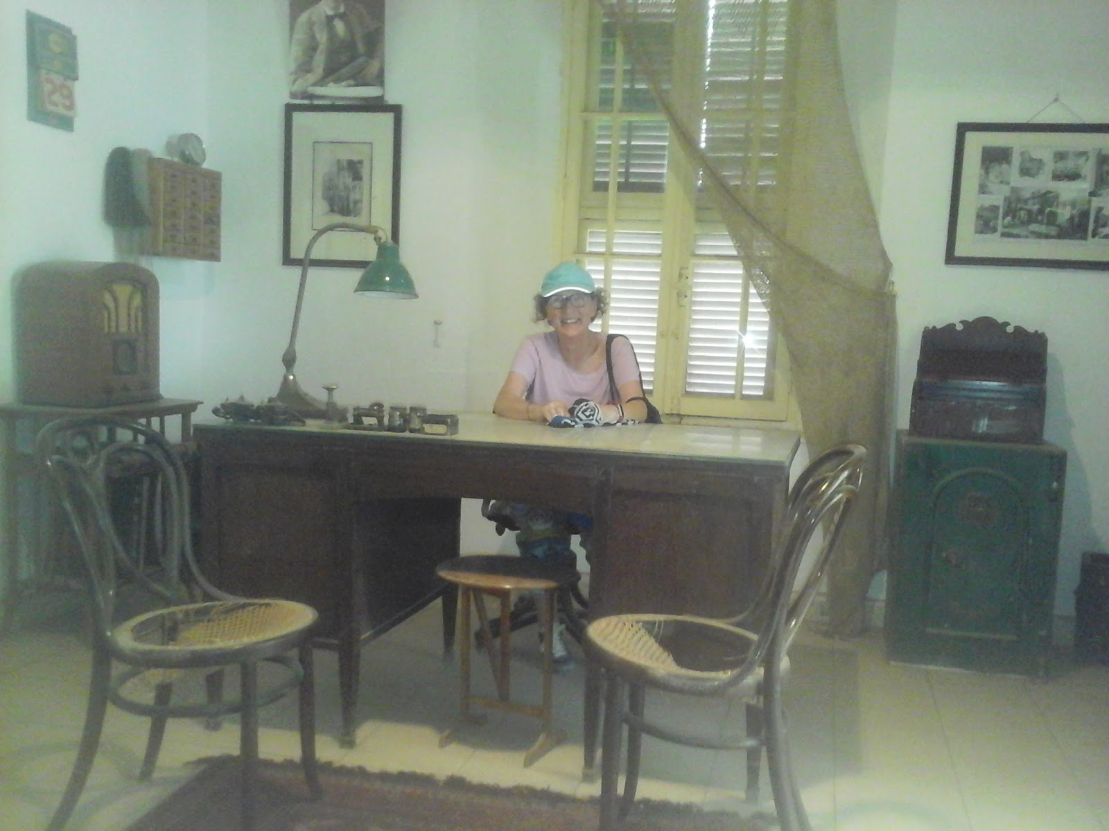 There were so many steps into the Carter House we had to leave the scooter in the hall. I made Marion pose at Carters desk
